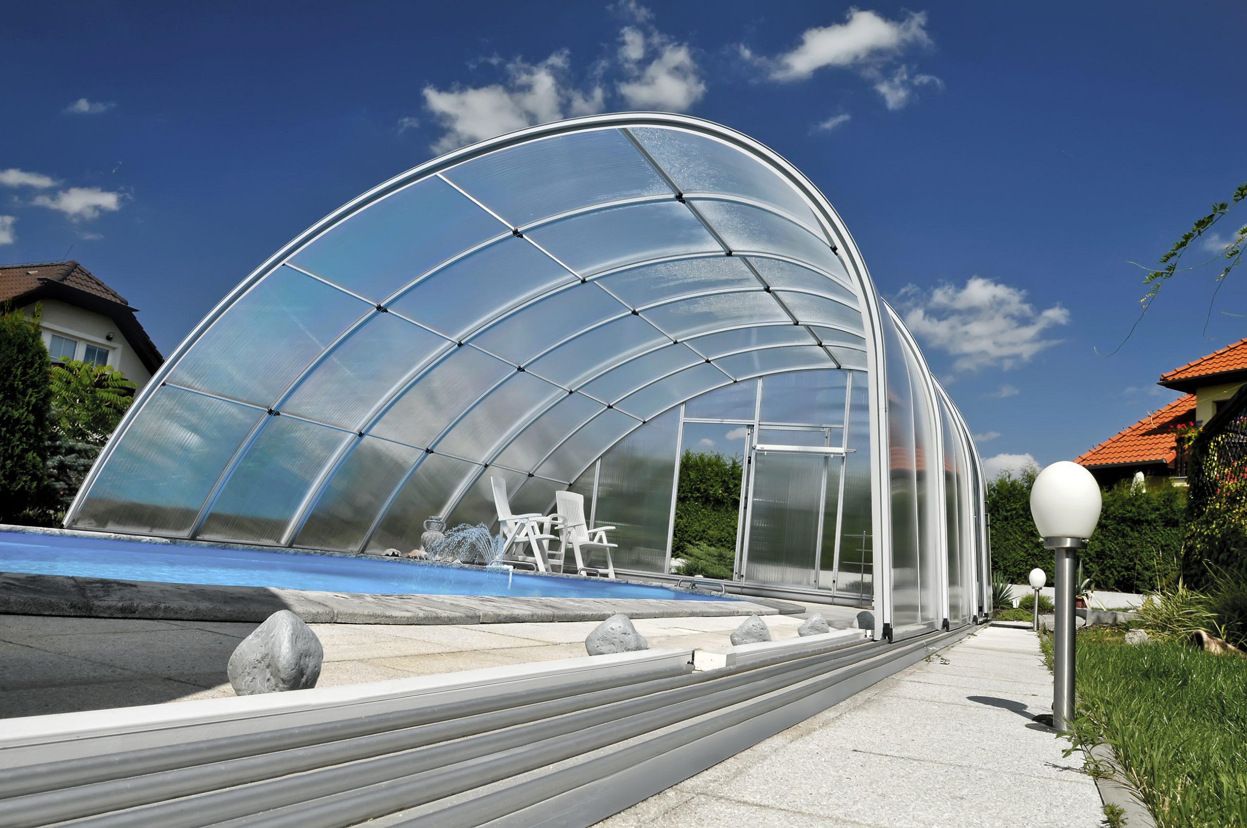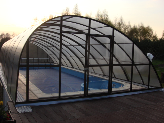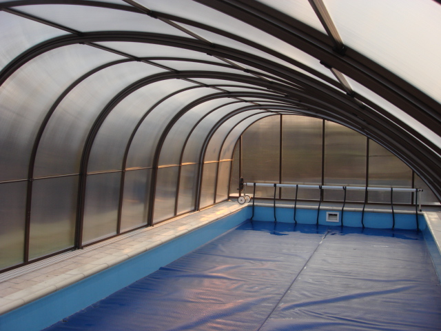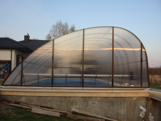 Zastosowano w nim jedną wysoką ścianę pionową oraz dowolną konfigurację długości. Takie rozwiązanie pozwala stworzyć wewnątrz idealne warunki do relaksu. Nawet niesprzyjająca aura nie jest w stanie zakłócić wypoczynku i korzystania z uroków własnego basenu. Zadaszenie łatwo można przesunąć za basen.